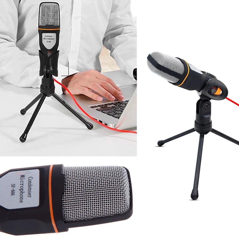 Descubre una forma sencilla y accesible de capturar audio de calidad con el micrófono condensador SF-666. Diseñado para ofrecer un sonido claro y nítido, este micrófono es una excelente opción para principiantes que se inician en la creación de contenido, para video chats, videoconferencias, karaoke o grabación de voz para podcast. Su diseño compacto y su base tipo trípode lo hacen práctico para cualquier escritorio o mesa.