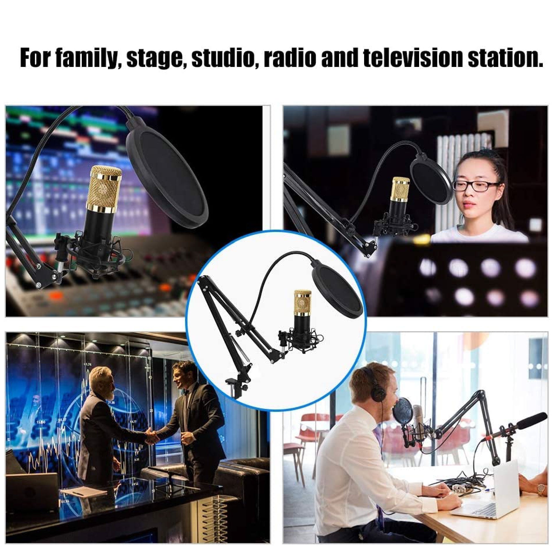 Audio de alta fidelidad: El micrófono de condensador BM-800 está diseñado con un circuito electrónico preciso y una cápsula de diafragma chapada en oro, lo que garantiza una captura de audio clara y detallada, minimizando el ruido propio.