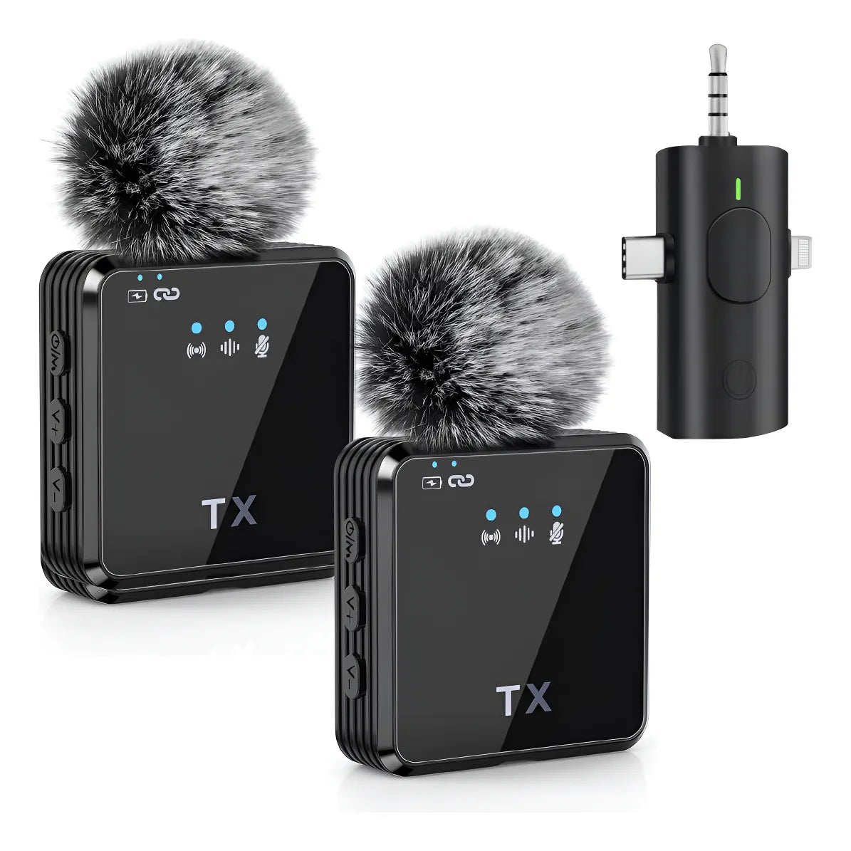 Eleva la calidad de tus grabaciones y transmisiones en vivo con el micrófono de solapa inalámbrico F11-2. Este set incluye dos micrófonos y un receptor versátil, permitiéndote capturar audio claro y profesional de dos fuentes simultáneamente, ideal para entrevistas, vlogs, transmisiones o grabaciones con dos participantes. Su tecnología "Plug and Play" y su alta compatibilidad lo convierten en la herramienta perfecta para creadores de contenido, periodistas y cualquier persona que necesite una solución de audio de alta calidad y fácil de usar.