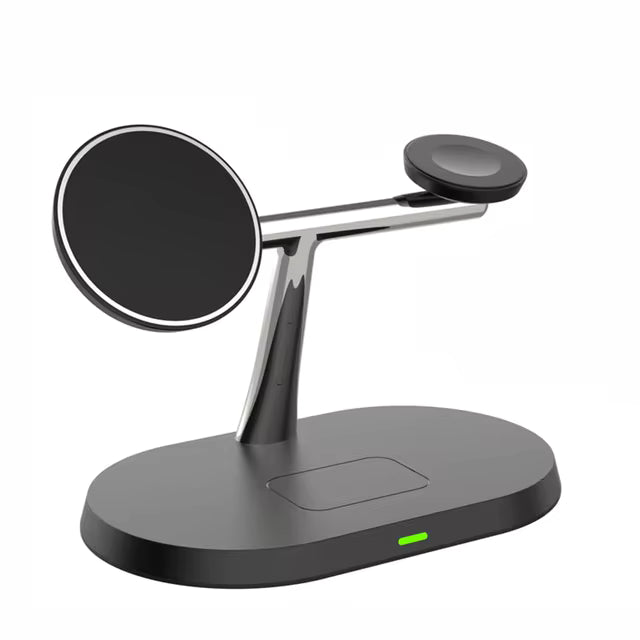 Transforma tu escritorio o mesita de noche en un centro de carga elegante y eficiente con la Estación de Carga Inalámbrica 3 en 1 Magnética. Diseñada para los usuarios de múltiples dispositivos, esta base de carga consolidada te permite cargar tu smartphone compatible con MagSafe, Apple Watch y AirPods (o auriculares compatibles con carga inalámbrica) de forma simultánea, rápida y sin enredos de cables.
