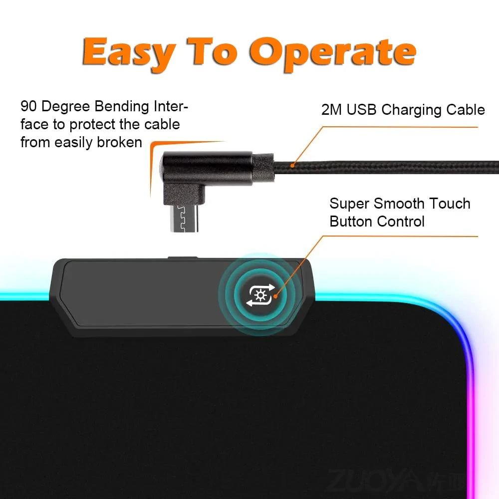 Iluminación LED RGB vibrante: Personaliza tu espacio de juego con una espectacular iluminación RGB que rodea el borde del mouse pad. Elige entre múltiples modos de iluminación, colores estáticos o efectos dinámicos para crear el ambiente perfecto que se sincronice con tu equipo.