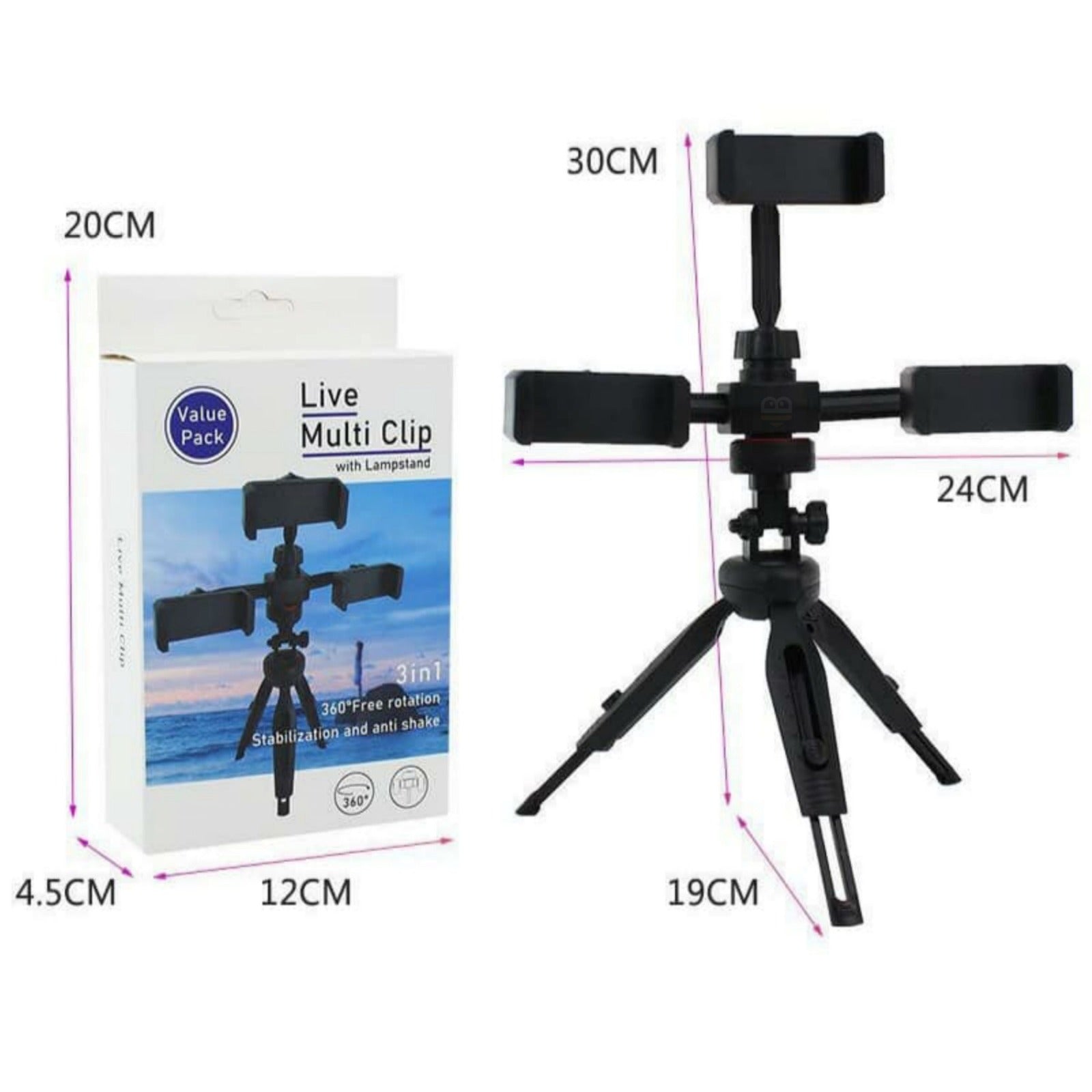 ¡Lleva tu creatividad al siguiente nivel con el Soporte/Trípode Multifuncional para Múltiples Celulares! Diseñado para streamers, creadores de contenido, educadores o cualquiera que necesite gestionar varios dispositivos simultáneamente, este innovador soporte te permite montar y posicionar hasta tres smartphones a la vez. Olvídate de los malabares con diferentes trípodes o soportes; este sistema integrado ofrece una solución compacta y estable para tus transmisiones en vivo, grabaciones de video multiplataforma, videollamadas con diferentes ángulos o monitoreo de redes sociales. Su versatilidad y estabilidad te darán la libertad de crear contenido dinámico y profesional con facilidad.